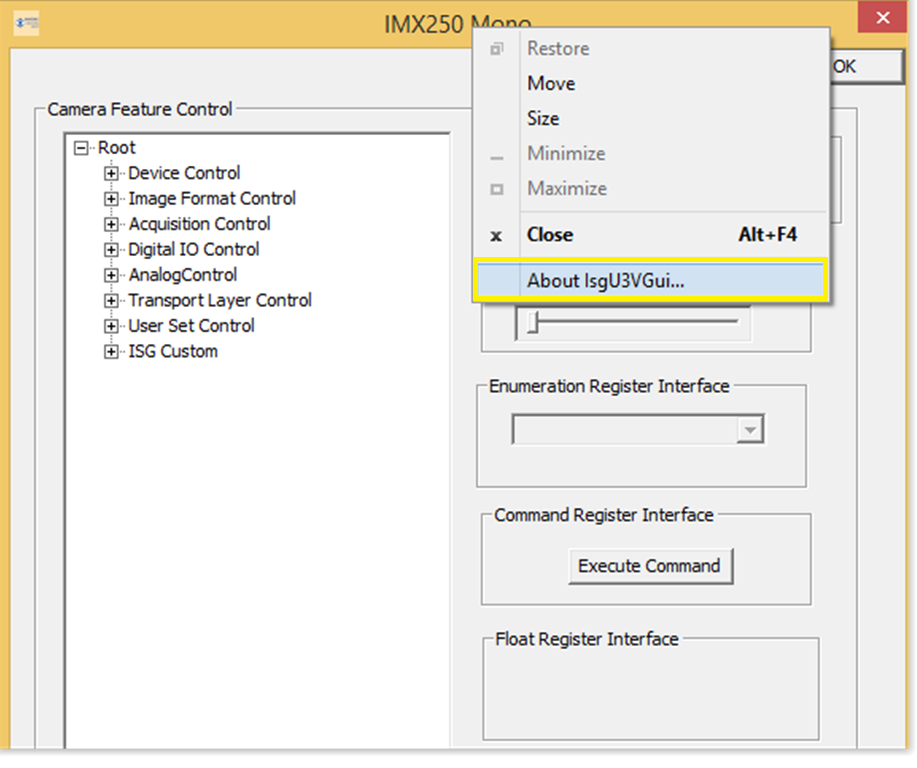 - Host pc must have IsgU3VGui_version 209 or later installed.